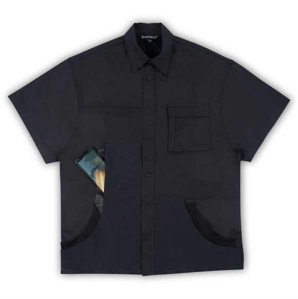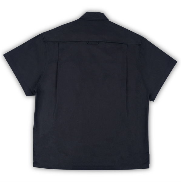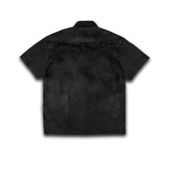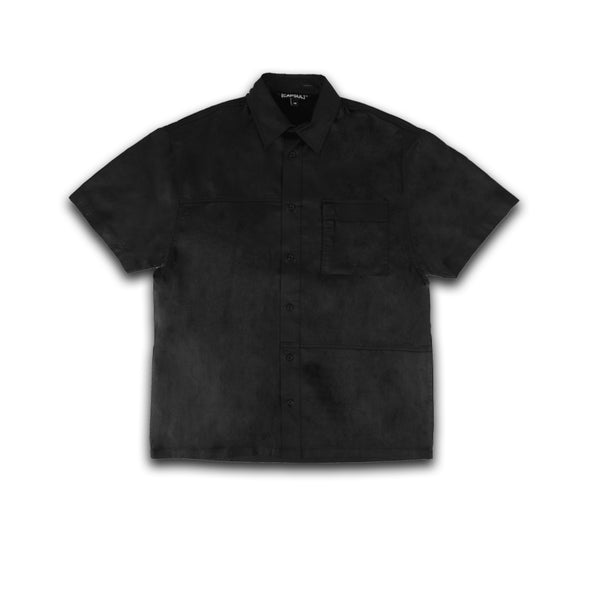 BLACK OVERSIZE SHORT SLEEVE BUTTON DOWN SHIRT