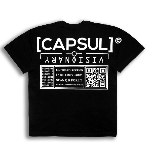 [CAPSUL]©️ VISIONARY Q.R CODED OVERSIZED SHORT SLEEVE BLACK PREMIUM T-SHIRT
