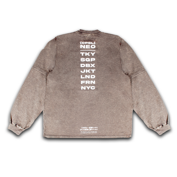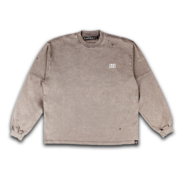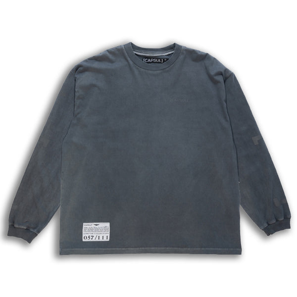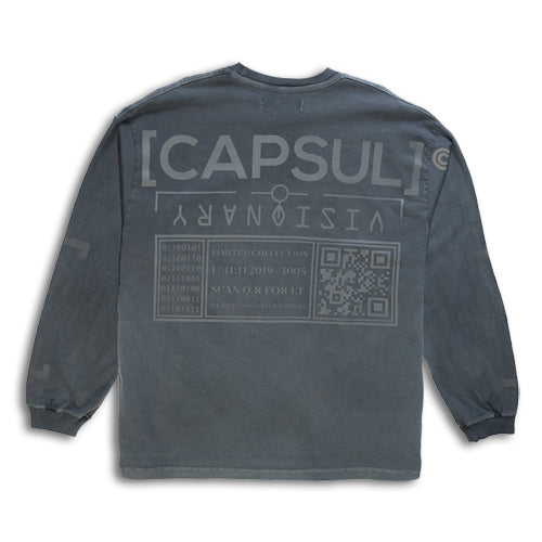 [CAPSUL]©️ VISIONARY QR CODED VINTAGE GREY LONG SLEEVE T-SHIRT