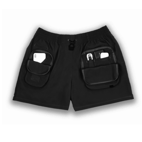 BLACK MULTI POCKET TECHNICAL SHORTS
