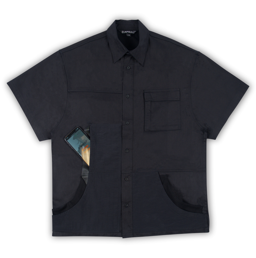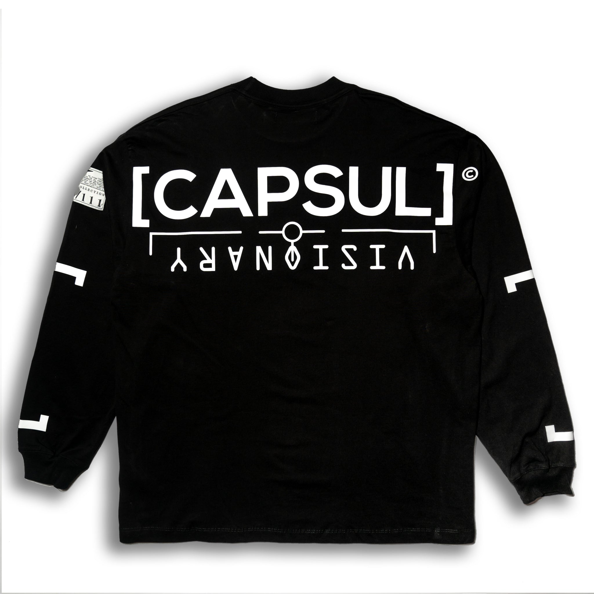[CAPSUL]©️ VISIONARY Q.R CODED OVERSIZED SHORT SLEEVE BLACK PREMIUM T-SHIRT