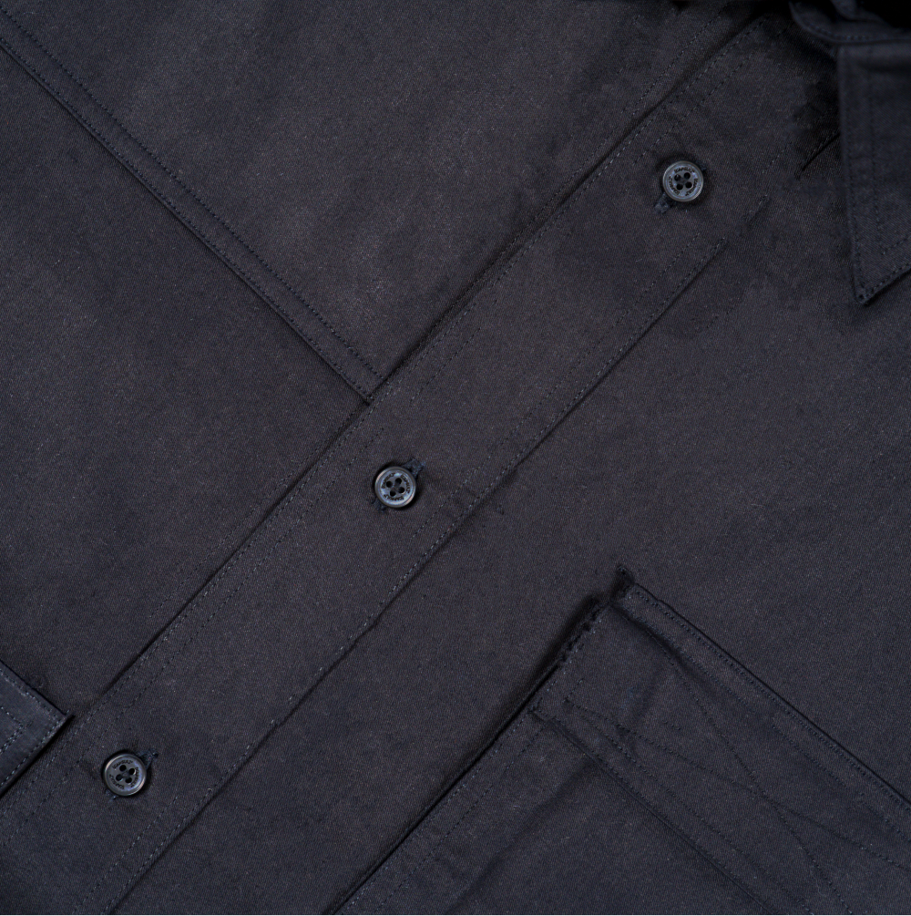 Black Utility Drop Pocket Shirt - Oversized technical detailed shirt with zip chest pocket and front double kangaroo pockets with special drop pocket on front for when on the move. Internally lined with soft cotton and twill cotton dual combination. With [CPSL] rubber patch detail on lower part of shirt. 100% premium cotton