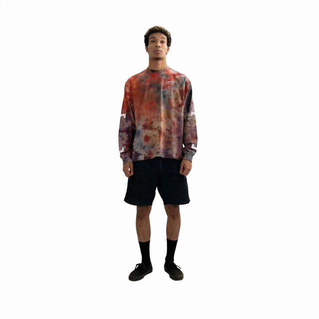 GALAXY ICE TIE DYE REFLECTIVE PRINT L/S PREMIUM T-SHIRT: Made from 100% premium cotton. Rib knit crewneck trim, short sleeves, reinforced sleeves and hem seams. Hand made ice tie dye with reflective silver front and back sublimated print. Limited collection patch numbered from 001 - 111 / 111 making every piece exclusive.