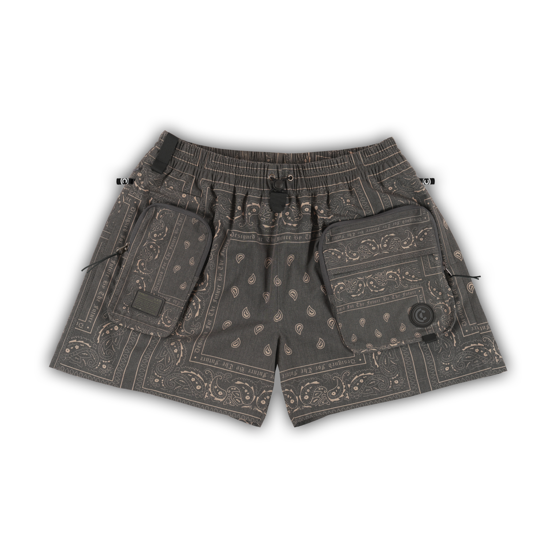 The ultimate in functional, technical shorts. Made with durable water resistant rip stop fabric, it features a custom paisley print design with large double pocket storage and a smaller secure mobile phone pocket that can hold 2 phones. Convenient small card / ear bud pocket and carabiner holder on waist for your all purpose, functional convenience.