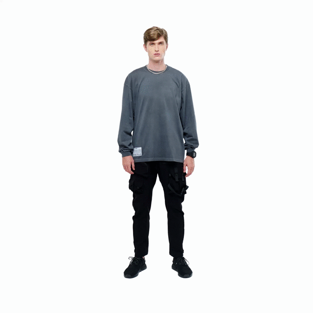 Vintage grey Q.R code oversized long sleeved t-shirt made of 100% premium cotton. Rib knit crew neck trim with reinforced sleeve and hem seams. With sublimated front and back print and a scanable Q.R code that links to http://www.capsulclothing.com.
