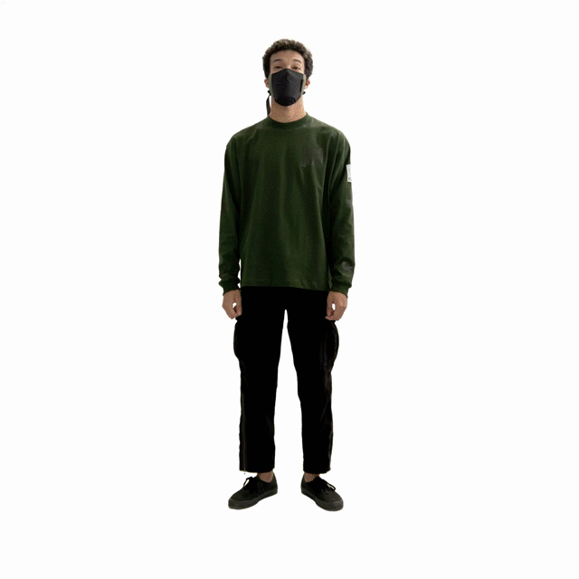 Visionary military green long sleeve t-shirt. Made from 100% premium cotton, rib knit crewneck trim, reinforced sleeves and hem seams. With sublimated scannable Q.R print on front that links to capsulclothing.com. [CAPSUL]©️ VISIONARY print on back and [bracket] print on both sleeves. Limited collection patch numbered from 001 - 111 / 111 making every piece exclusive.